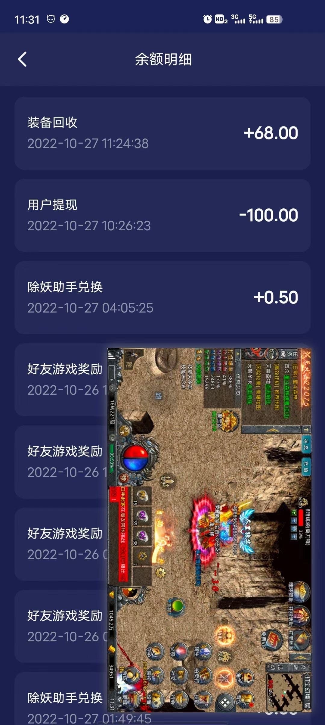 主要玩法就是玩游戏升级每天领元宝开肓盒,好东西直接几十元一个,可提现支付宝。