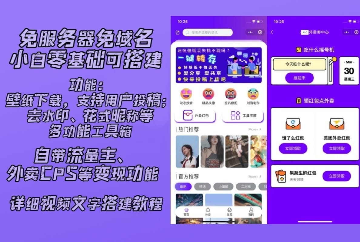 7771二开优化版紫色UI壁纸小程序支持用户投稿在线审核支持流量主零基础搭建免服务器免域名